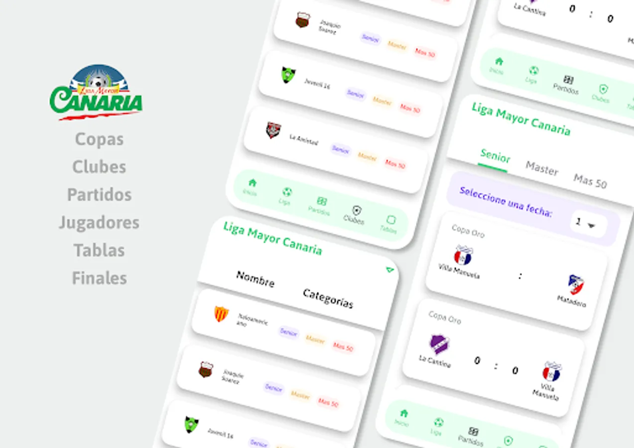 Liga Mayor Canaria, if I design with the purpose of informing in an orderly manner, the matches, the clubs and the members of the League.