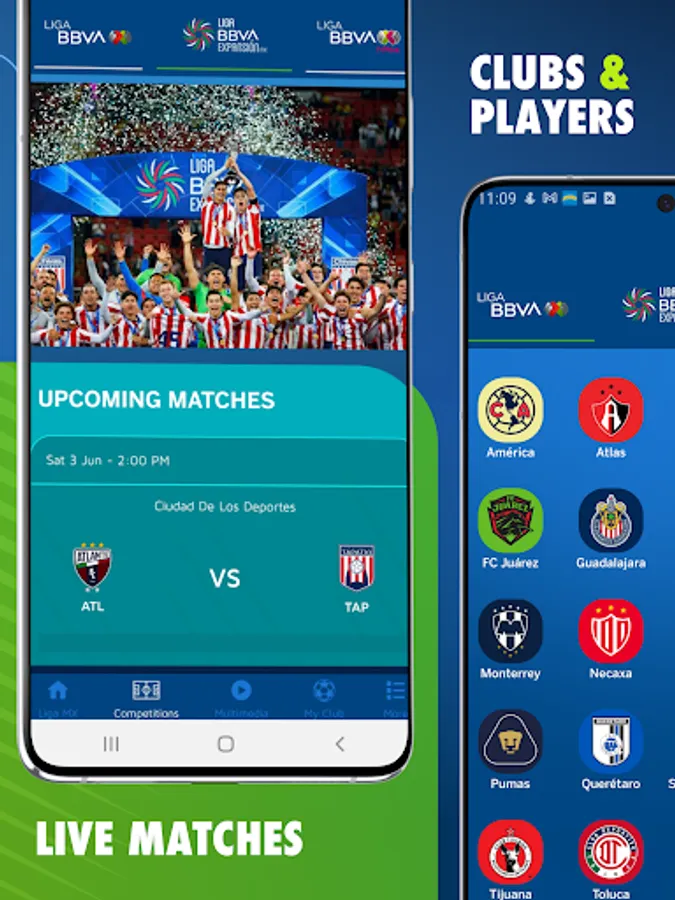 The Liga MX Official App is the ultimate guide to all professional competitions in Mexico: Liga BBVA MX, Liga BBVA Expansión MX, Liga BBVA MX Femenil and Youth Categories, as well as Leagues Cup. Free to download, the app provides fans with up-to-date information on their favorite teams and players, as well as live scores, highlights, and more.