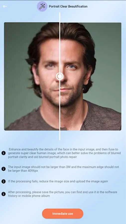 -- Turn your portraits, selfies, or group photos into HD photos - improve overall picture sharpness
