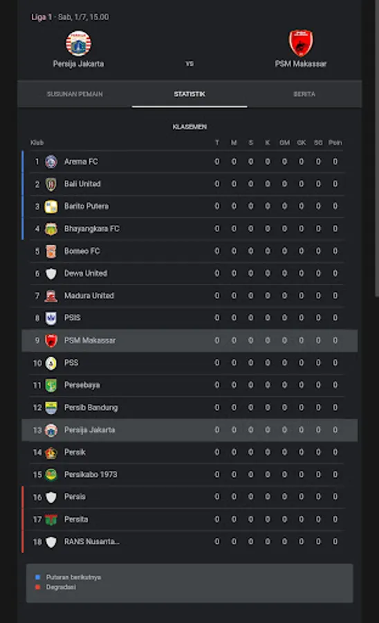 For you lovers of Indonesian football league 1 With this application you will get a lot of information such as: