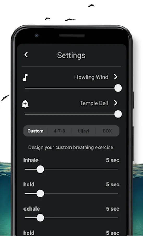 + Predefined Breathing Exercises (4-7-8, Ujjayi Pranayam, Box)