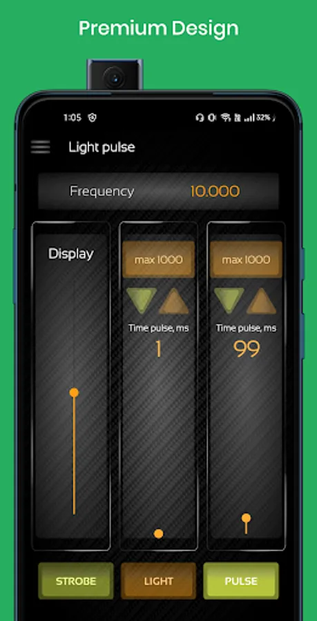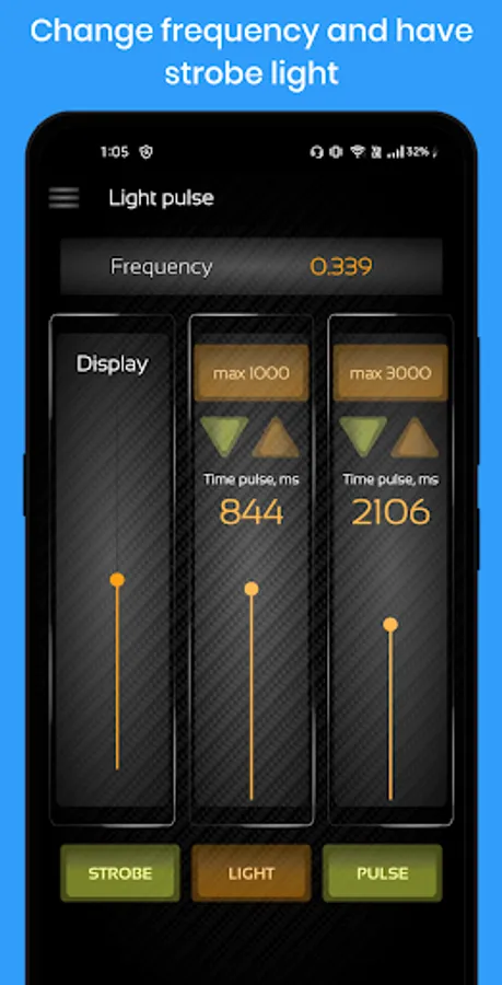 Light pulse is strobe light and flashlight application. Allows you to use the phone's camera flash as a strobe light and flashlight. The strobe mode has wide ripple mode settings - from 0.001 to 10 s. The stroboscope allows you to fine-tune the pulsation frequency with an accuracy of 0.001 s, which allows it to be used to measure the speed of rotation, vibrations and other cyclically repeated movements of objects.
