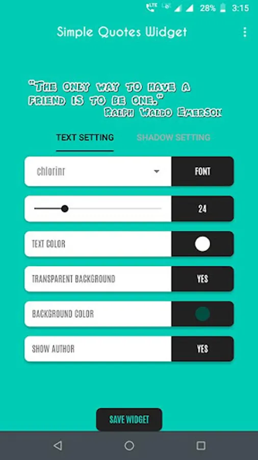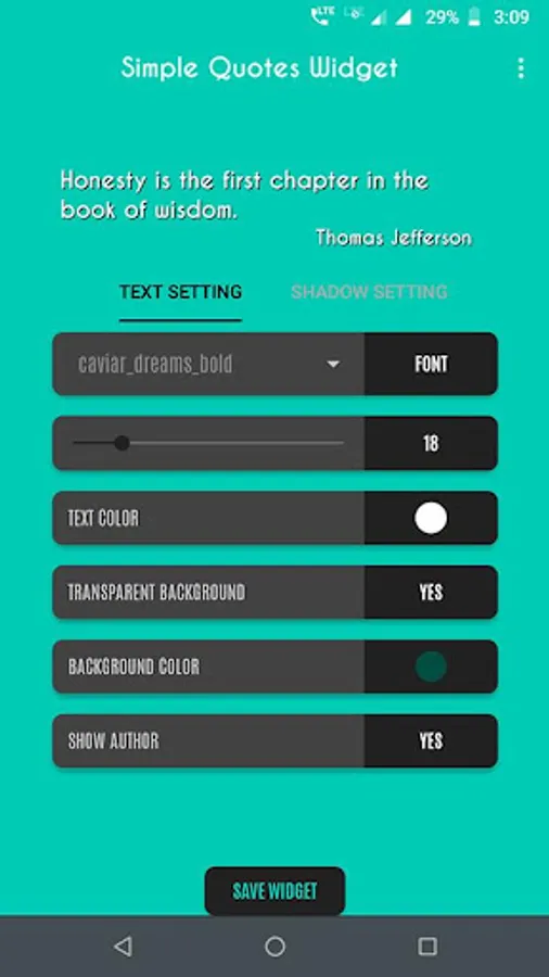 Clicking on quotes widget will change the quote and you can click on author name to open the widget configuration screen. or you can open app and select widget from the list to configure the quote widget style and fonts.