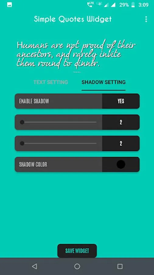 Quotes on home screen widget are fully customisable with fonts, color, size, shadow and many more options.