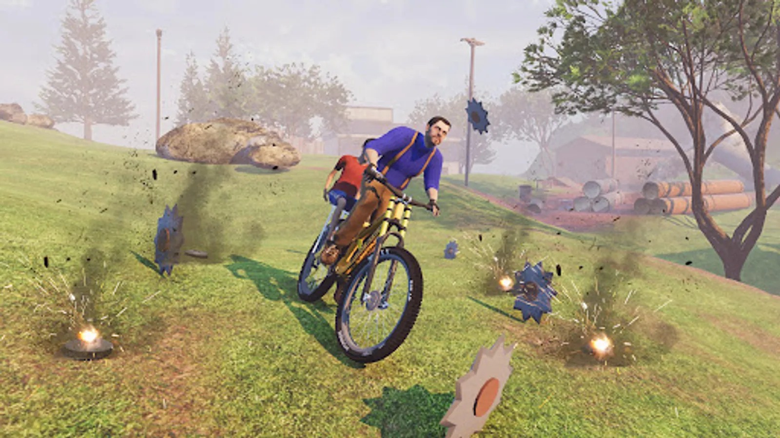 with several player characters as a bicycle men , stick hopper, a father-son bike riding and Guts Wheels Glory .