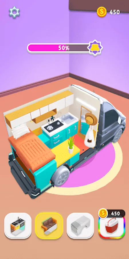 Assemble a wide variety of camper vans and customize them to your taste . Start as a rookie and level your way up to increasingly complex camper vans.