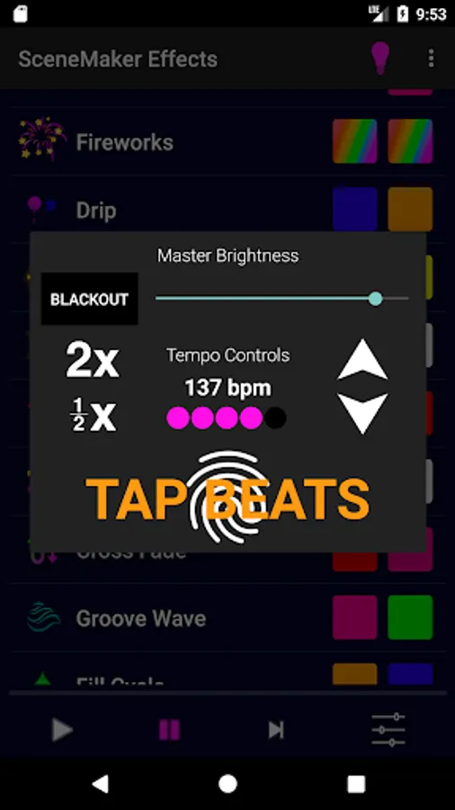▷BEAT-SYNCED EFFECTS ♩: Use the Super SceneMaker controller for looping effects that sync to the beat of your music. Each of the 100+ effects can be customized with your favorite colors. Just turn on your lights and let the SceneMaker run all night long. Control the speed of your lights with precision manual tempo controls or auto beat detection using your device's built-in microphone.