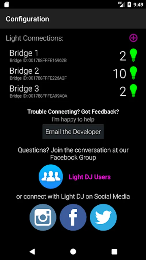 Hi, I'm Kevin, the creator of Light DJ Deluxe. I want to make sure that everyone gets a great light show, so if you're having issues getting the app to connect shoot me an email at kevin@nrthrnlights.com. I'm dedicated to making a quality app to show off your new lights!