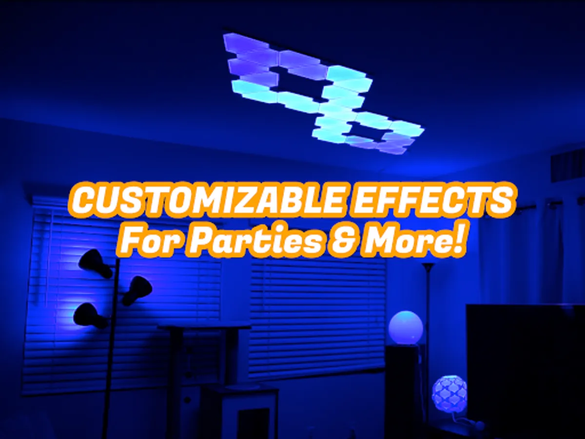▷MUSIC VISUALIZER ♬: Create the ultimate music listening experience. The app listens to your music and changes the effects based on the mood of the song. Lights get active during intense parts of a song and flowy with softer melodies and magically change colors at just the right moment. Special controls for Nanoleaf allow you to control rotation and fill angle to match your Nanoleaf panel orientation.