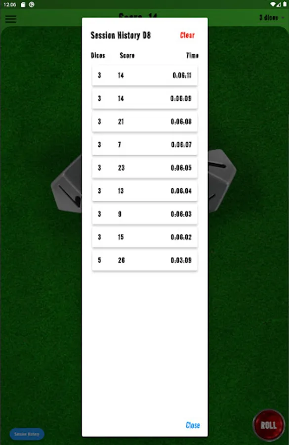 All the roll scores are stored in a session history for each dice. Saved scores are available while you use the app. When the app is closed completely the saves will be removed.
