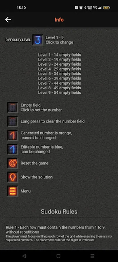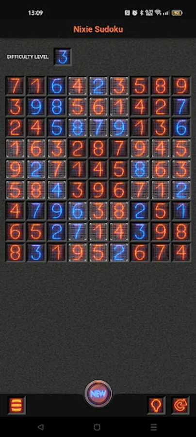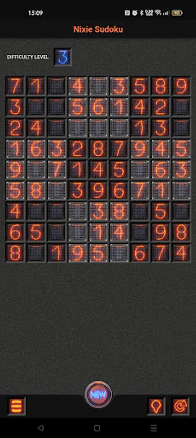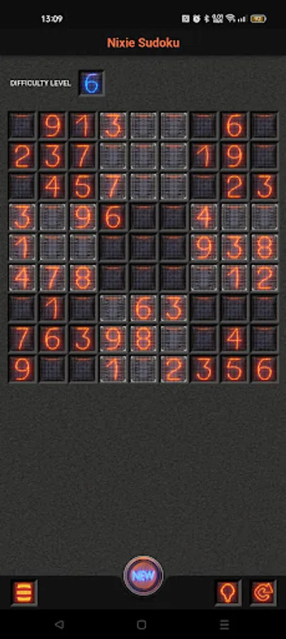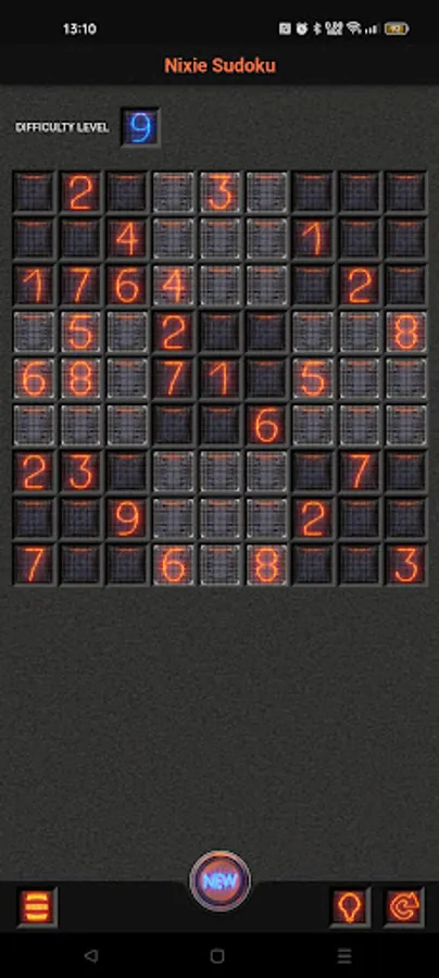Nice and simple nixie tube style sudoku puzzle game with 9 difficulty levels.