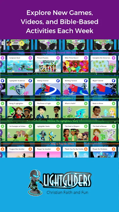 Enter Lightgliders to experience a virtual world of Christian faith, games, and community! Lightgliders is a multiplayer online game with exciting missions, a calendar of community events, and weekly activities that encourage biblical faith and values! Play fun games and watch videos to level up your Lightglider and unlock more to do in the Academy. Attend in-game events to meet new friends and to get exclusive clothing, hats, and other items to customize your character. Learn how you were made to shine with Bible-based activities updated each week. Ask your parents to get Lightgliders for your computer, tablet, or smartphone today!