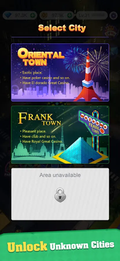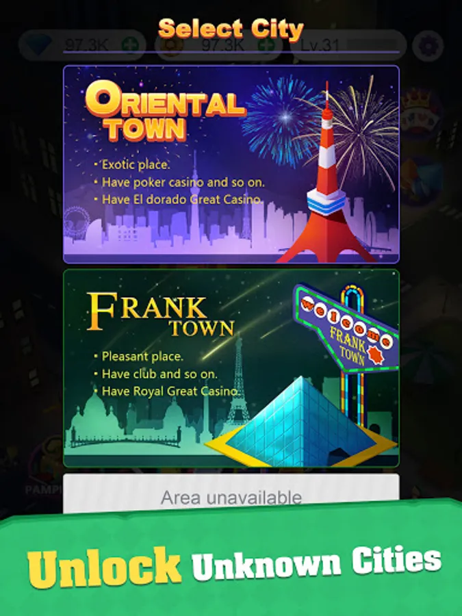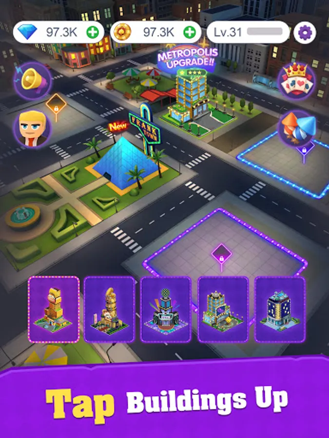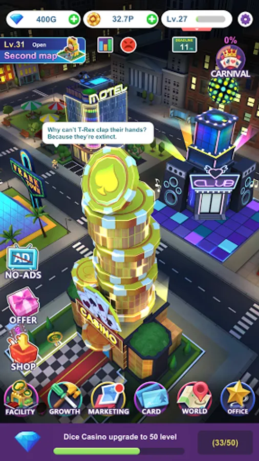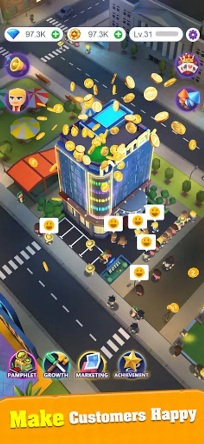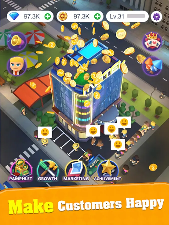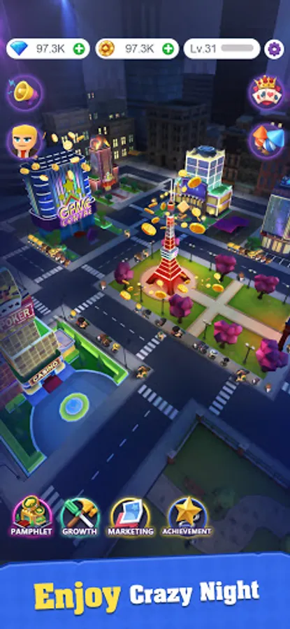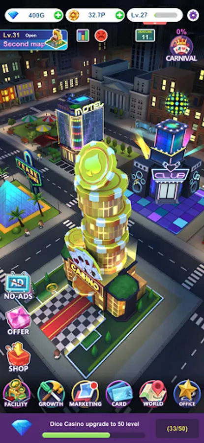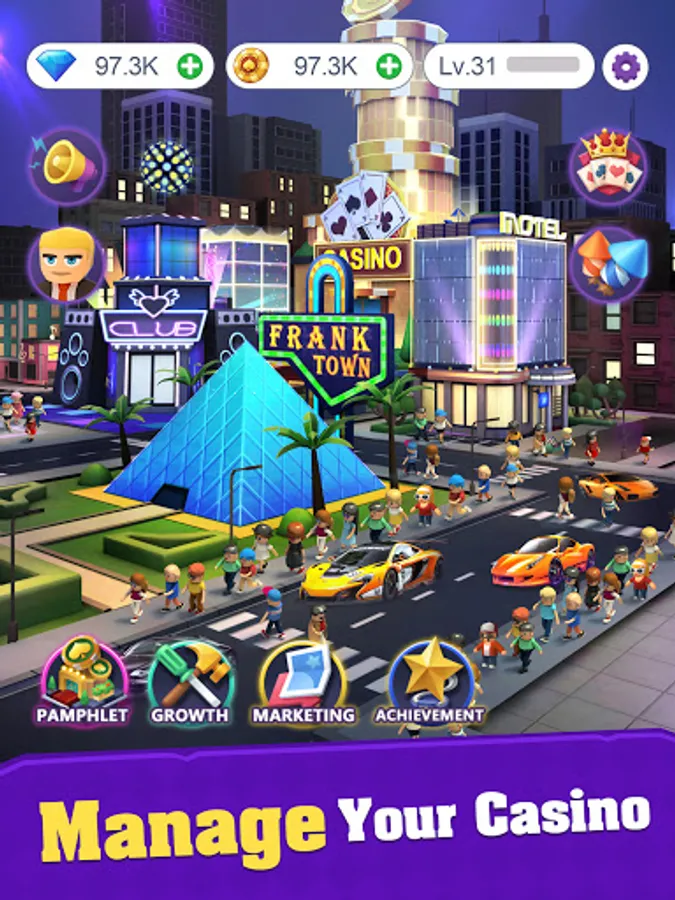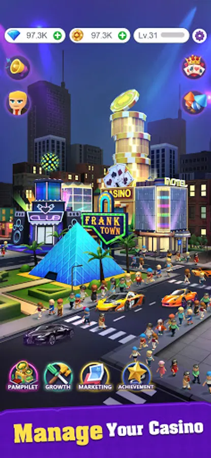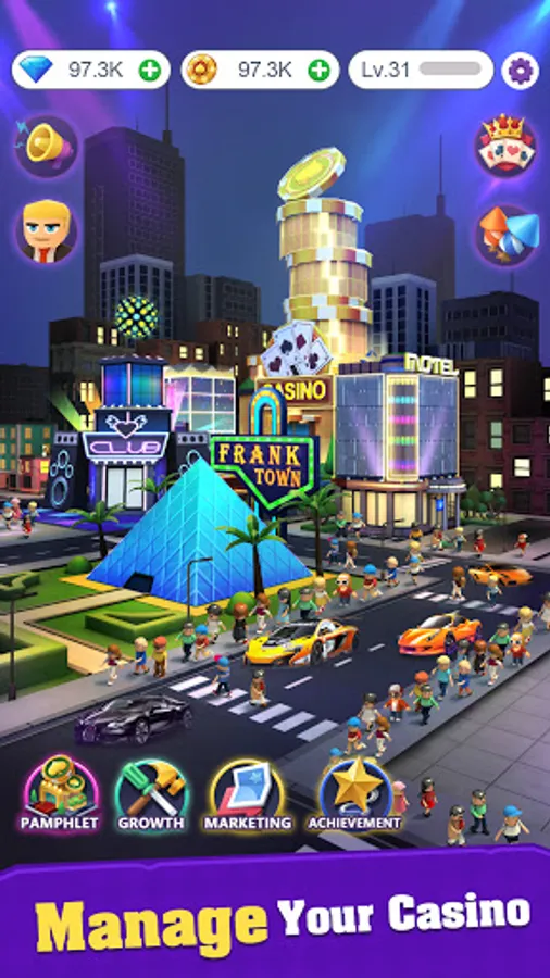 Improve your city with new facilities. Prepare marketing campaigns to bring more visitors to your gambling city, and offer them the most enjoyable experience. Extend the marketing to increase the number of clients.