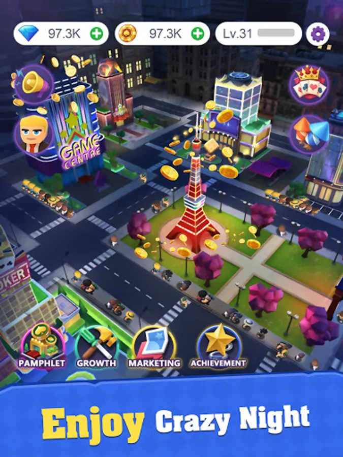 If you like management and idle games, you’ll enjoy Crazy night. An easy-to-play, intuitive while challenging game. Start with a small, toddling gambling city and make important business decisions in order to grow your tycoon. Transform your small business into the best gambling city in the world!