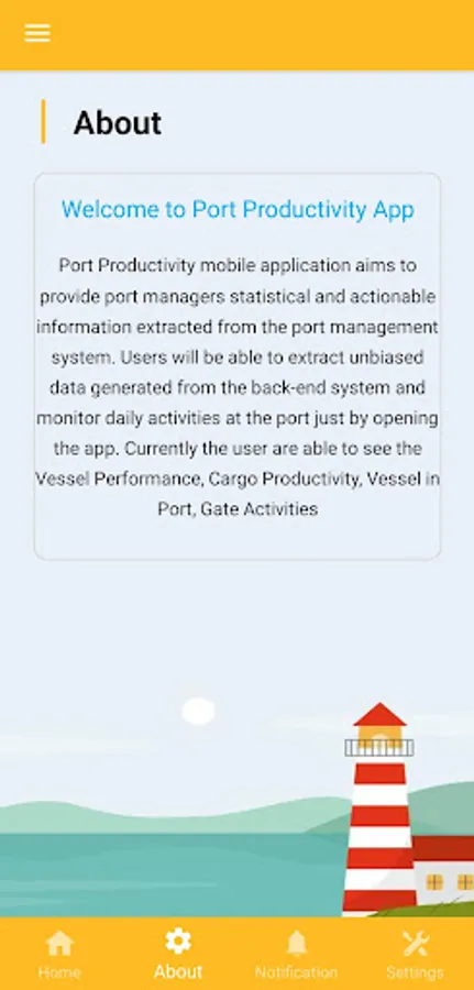 Currently the users are able to see the Vessel Performance, Cargo Productivity, Vessels in Port, Gate Activities, and etc.