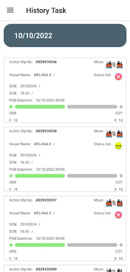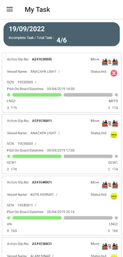 -Showing the Completed / Historical Task which already taken by Pilot or Boat