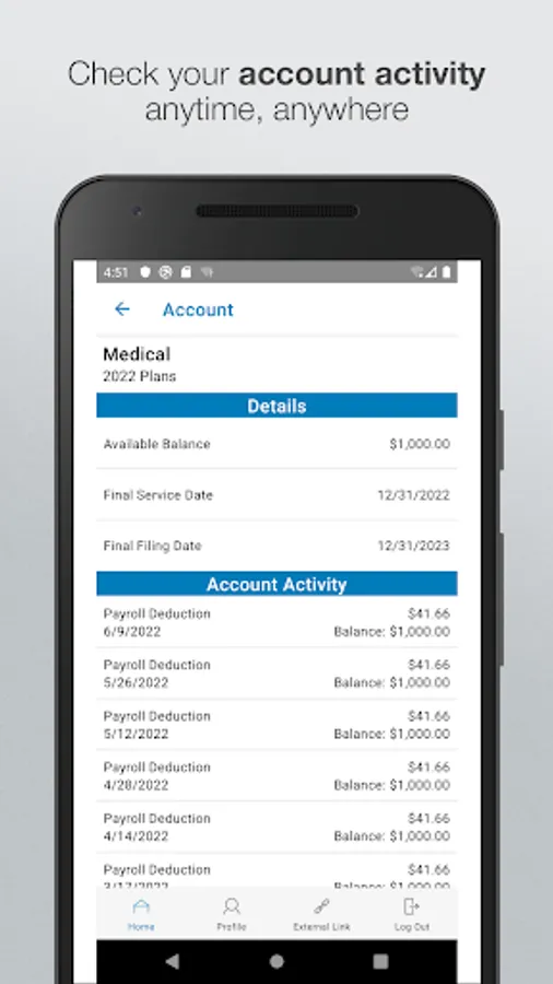 Save time and hassles while making the most of your HSA, HRA, and FSA health benefit accounts by quickly checking your balances and details. Our secure app makes managing your health benefits easy through real-time access and intuitive navigation to all your important account information on the go! Powerful features of the app include: