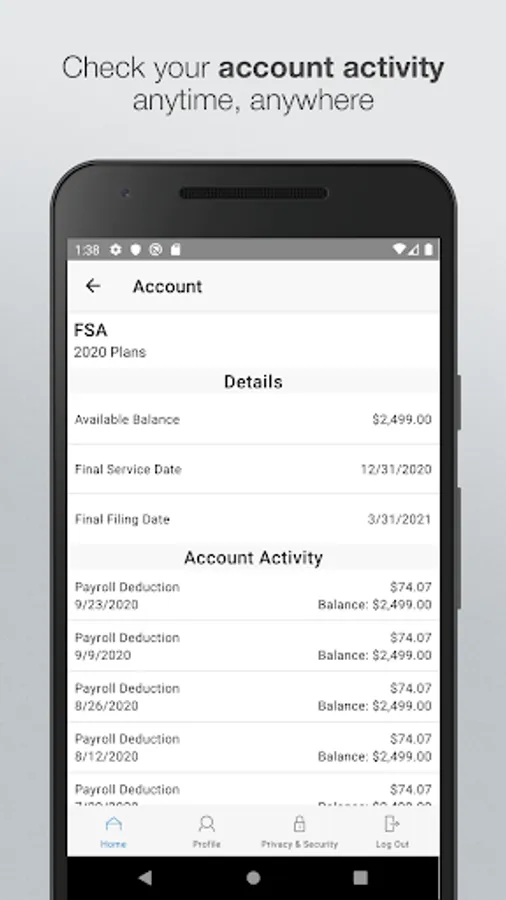 Save time and hassles while making the most of your HSA, HRA, and FSA health benefit accounts by quickly checking your balances and details. Our secure app makes managing your health benefits easy through real-time access and intuitive navigation to all your important account information on the go! Powerful features of the app include: