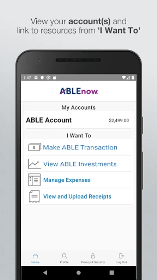 Make the most of your ABLEnow® account. Check your balance, make a contribution, pay qualified disability expenses and more, all within the ABLEnow mobile app.