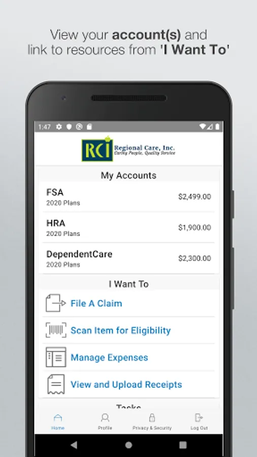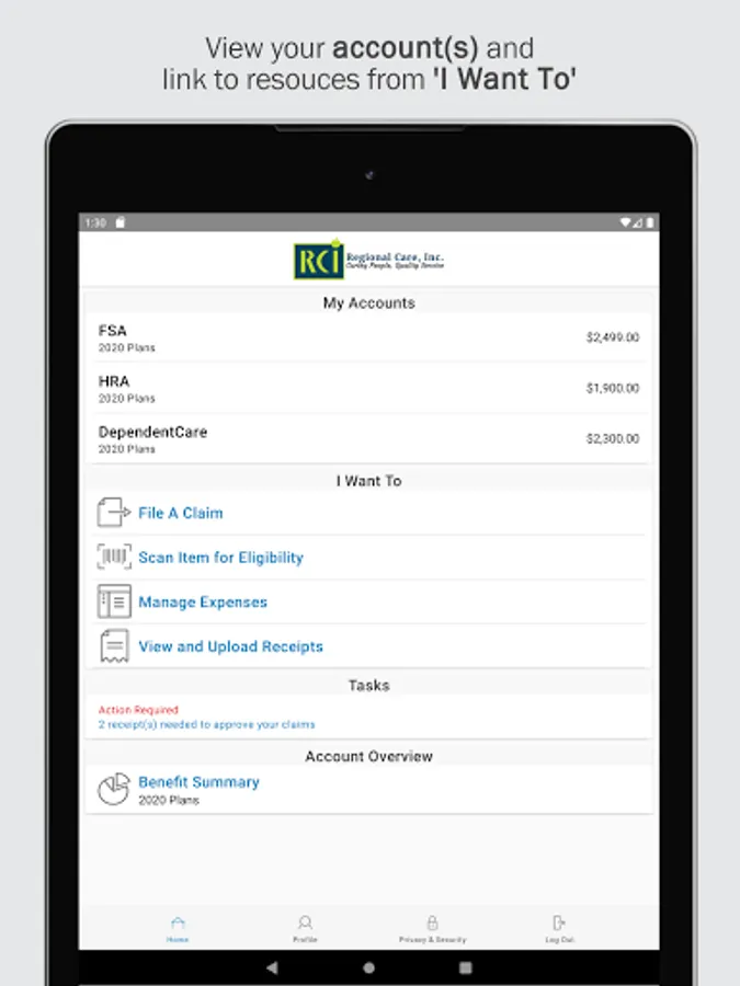 RCI FSA/DCAP/HRA Mobile Screenshots
