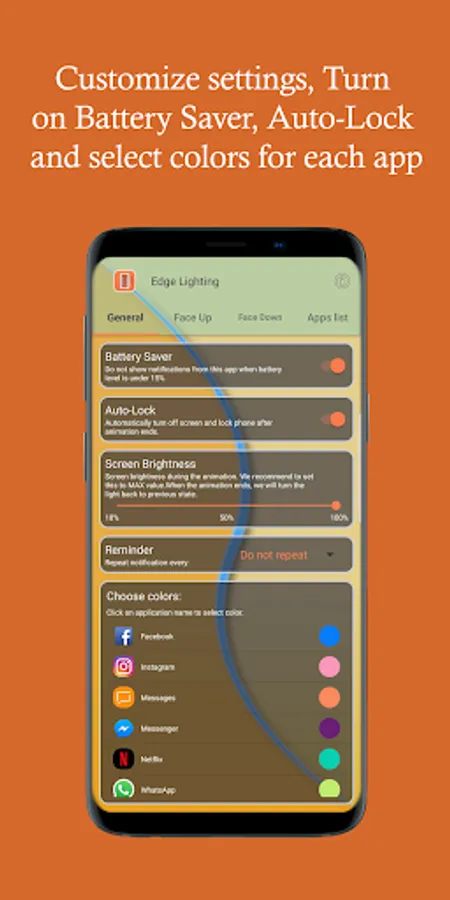 Choose what color you want for each app installed on your smartphone. Customize the effects as you like.