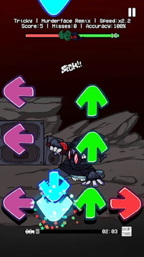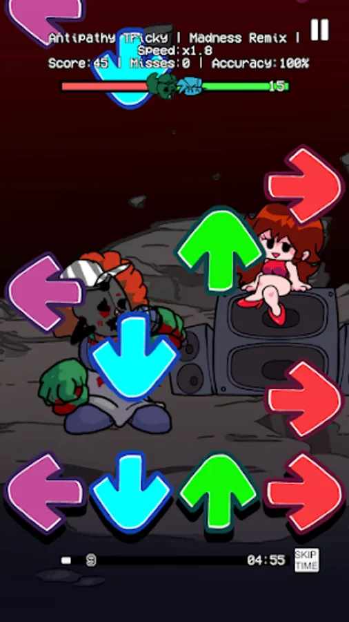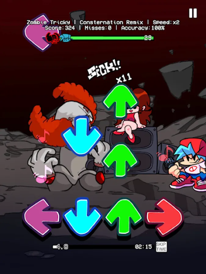 You love horror things like zombies or crazy things that combine a clown and a zombie. And, on Friday night, when you are going out with your Girlfriend, something similar suddenly appears out of nowhere. He challenges you to a Madness Funkin musical battle. Noisy? You have no choice. Please, do your best to defeat Tricky and Hank to protect your girlfriend.