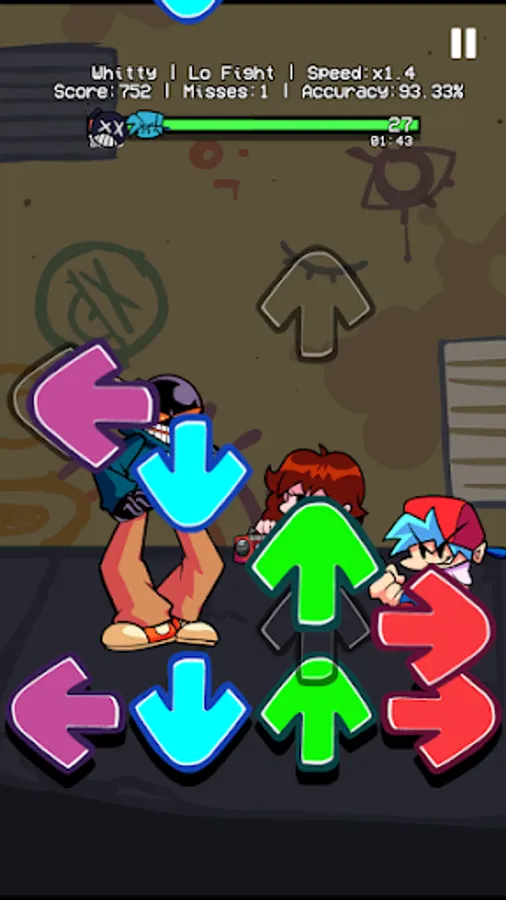 On Friday, You are going out with your girlfriend at night. Suddenly, you meet a strange guy with a funny bomb head in a small alley. Wait! Is that Whitty? Why don't you invite him to the rap battle right there? You'd better defeat Whitty, and other FNF enemies like Indie Cross, Garcello, Tricky, Rainbow Friends, Impostor V4... Then you can get your girlfriend's heart.