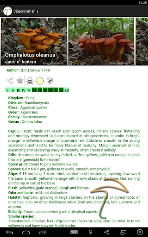 Ciupercomania, it is a perfect tool and ultimate field guide for amateur to professional mushroom finders to quickly identify gathered fungi from the wild. It provides information about all kind of mushrooms; it's mainly focused on macro fungi, but listing micro fungi as well.