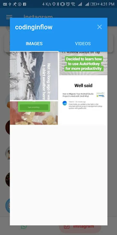 The story and status concepts are coming from Snapchat firstly. But now this idea is also adopted by Instagram, Facebook, YouTube and WhatsApp status is turning into a typical place for individuals to impart a wide range of stuff to their contacts.People use status to share messages or quotes just, in the type of inquiries or some data. Others use it to share some fascinating recordings and image pictures. So sometimes it is necessary to save or download these data for our references. This Whatsapp & Instagram Status saver or downloader app allows you to save or download the information in the gallery.