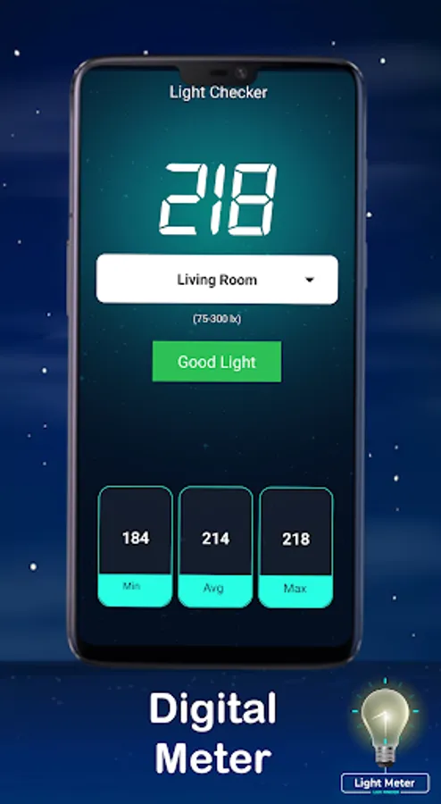 This Light Meter: Lux Meter: Kelvin Light Meter measures the ambient brightness with an embedded light sensor. It is used to check the lighting required for plants or to check the brightness of a study room and bedroom. Make sure that your screen with the sensor is facing the ambient light source, lamp, LED lighting, window, sun, etc. If the sensor is facing your face or ceiling the measurement will be poor.