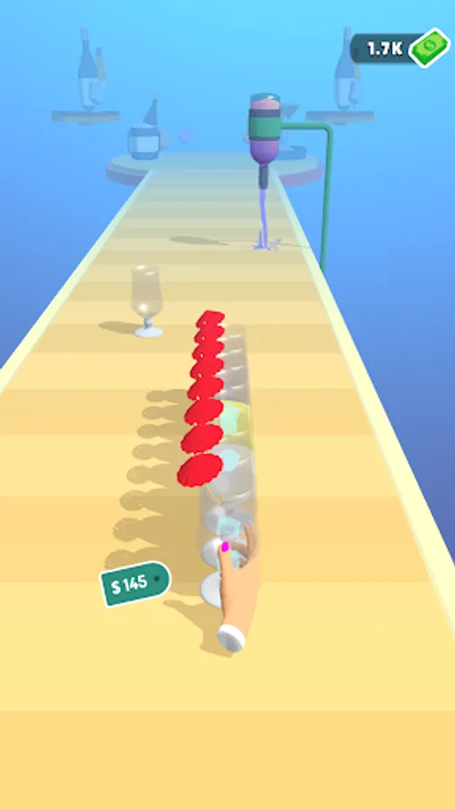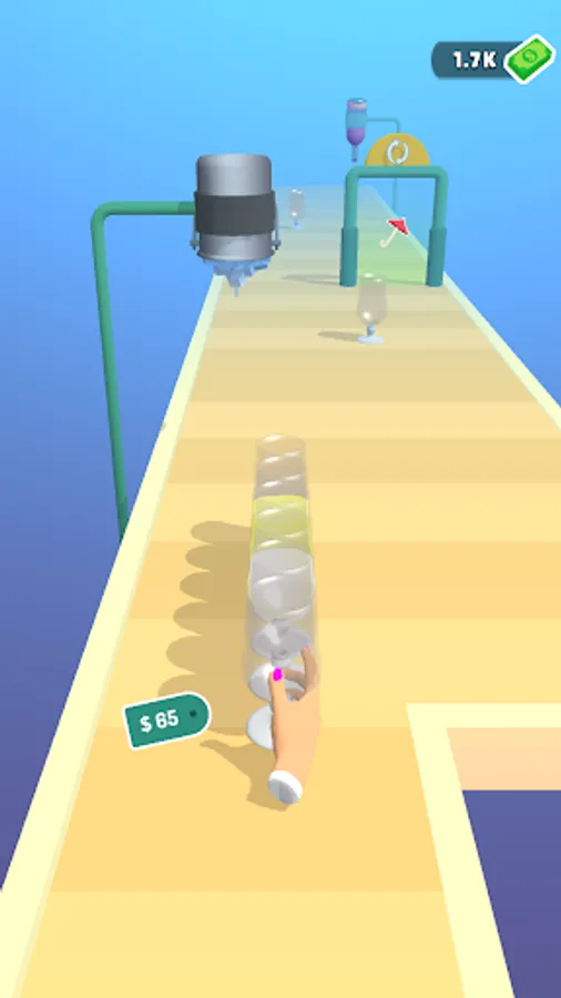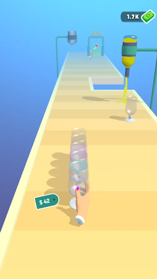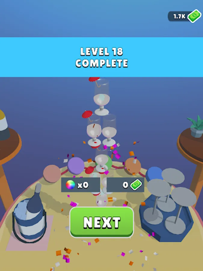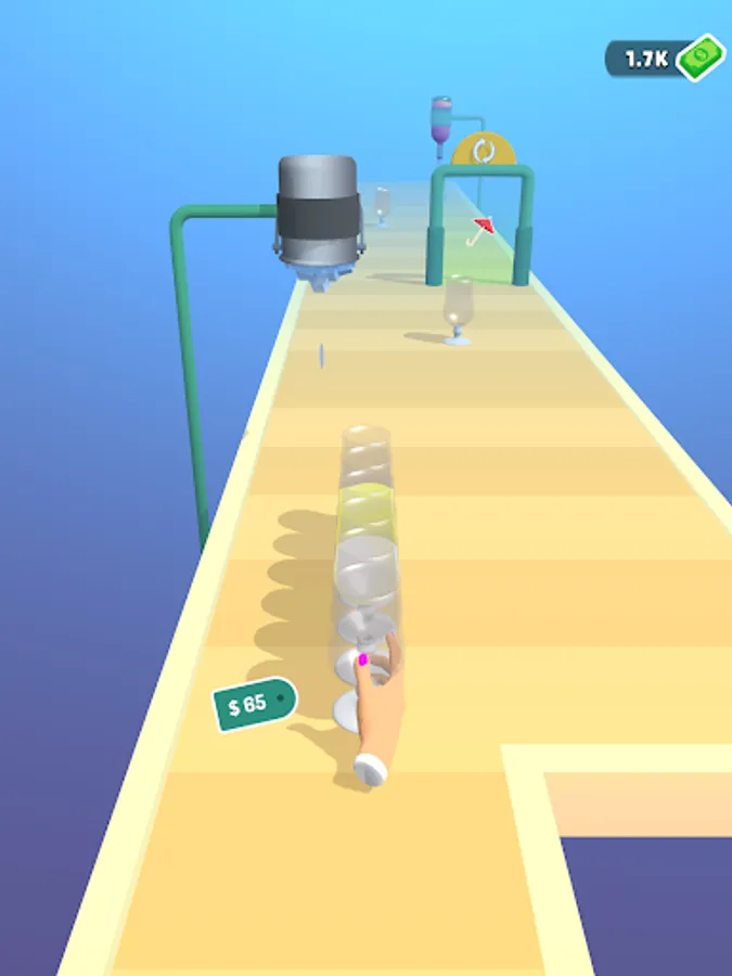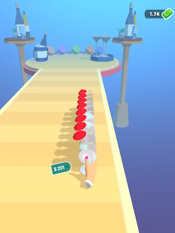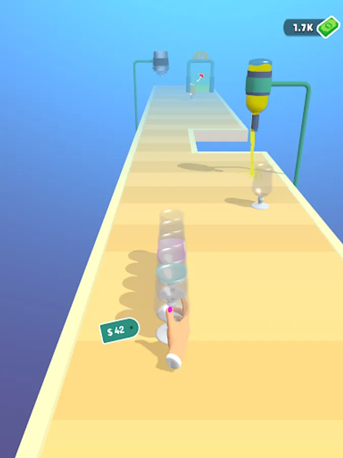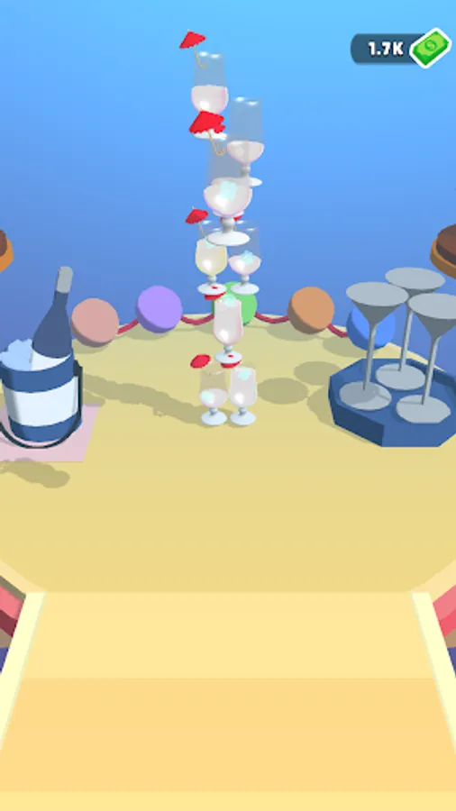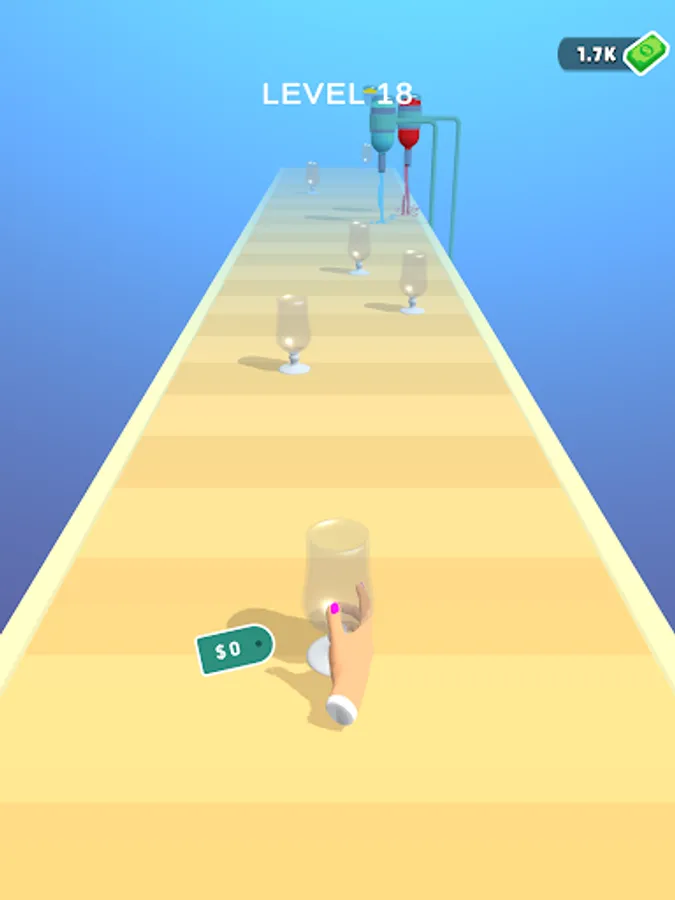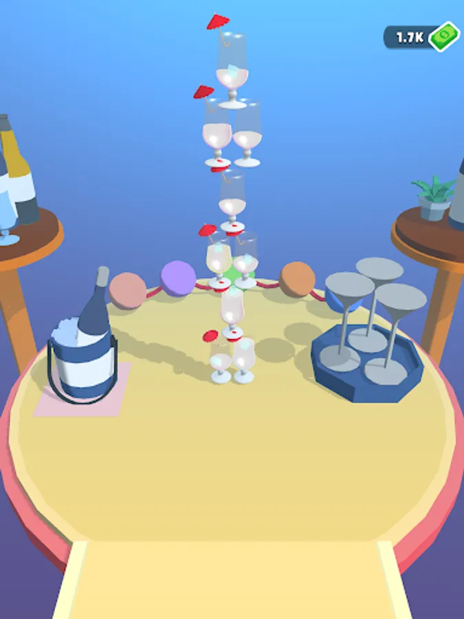 Collects glasses and different drinks. Mix and match colors to create your unique bartending skills. Show off the drinks pyramid at the end