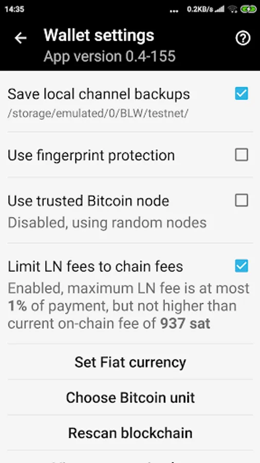 - Access to local file system (optional): to store an encrypted channel backup file.