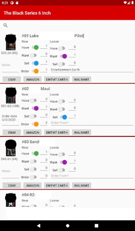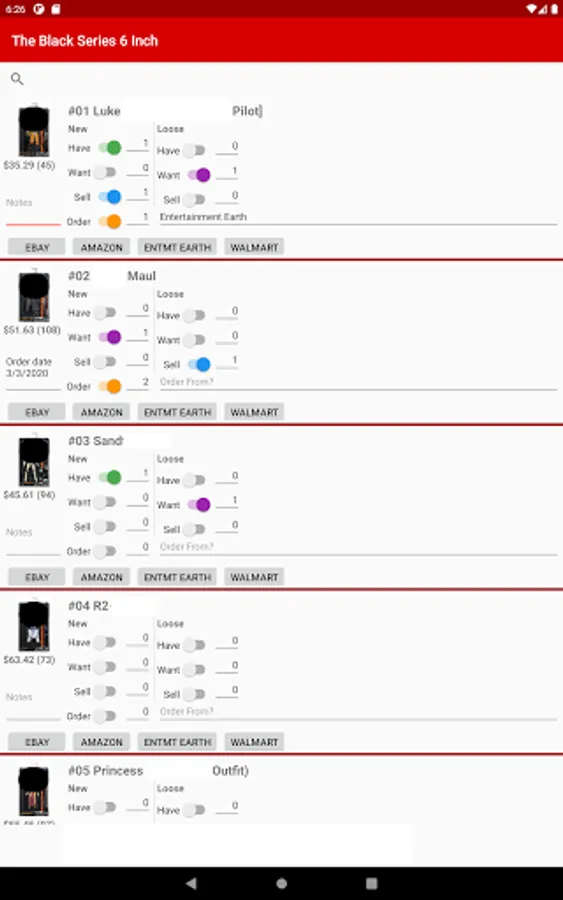 Need a figure and just cannot seem to find it? Tap the retail market buttons.