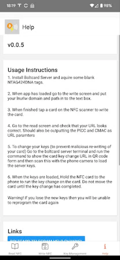 Quickly program a blank NFC card (NTAG424DNA) to act as your own personal Boltcard. A contactless / paywave like experience for the Lightning network. Before programming your NFC card you must set up your own https://github.com/boltcard/boltcard