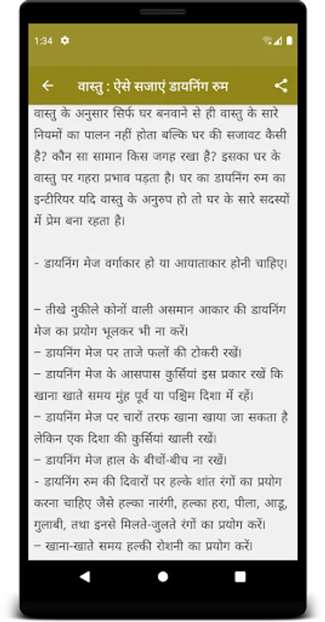 The app contain numerous वास्तुशास्त्र tips in hindi. Follow the provided वास्तुशास्त्र tips, get positive energy and live peaceful life. Download this app now