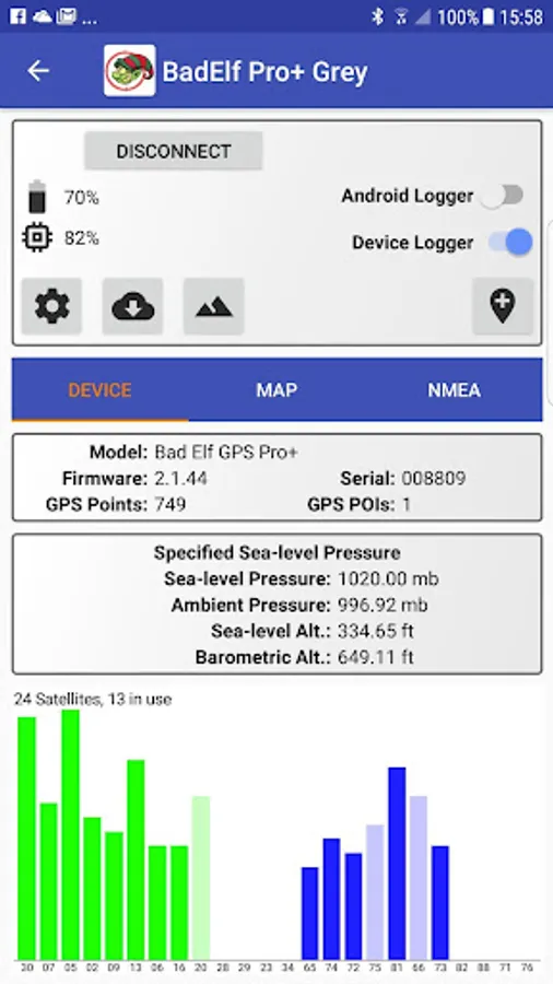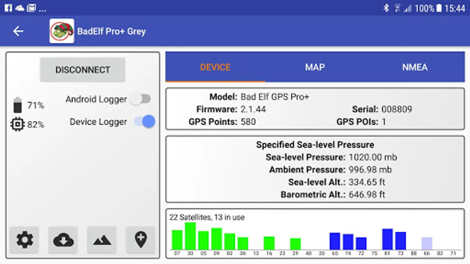- Bad Elf GPS Pro+ (model 2300), firmware V2.1.44 .