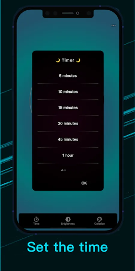 ✔️️ Set the time you want Turquoise Light to remain active on your phone.