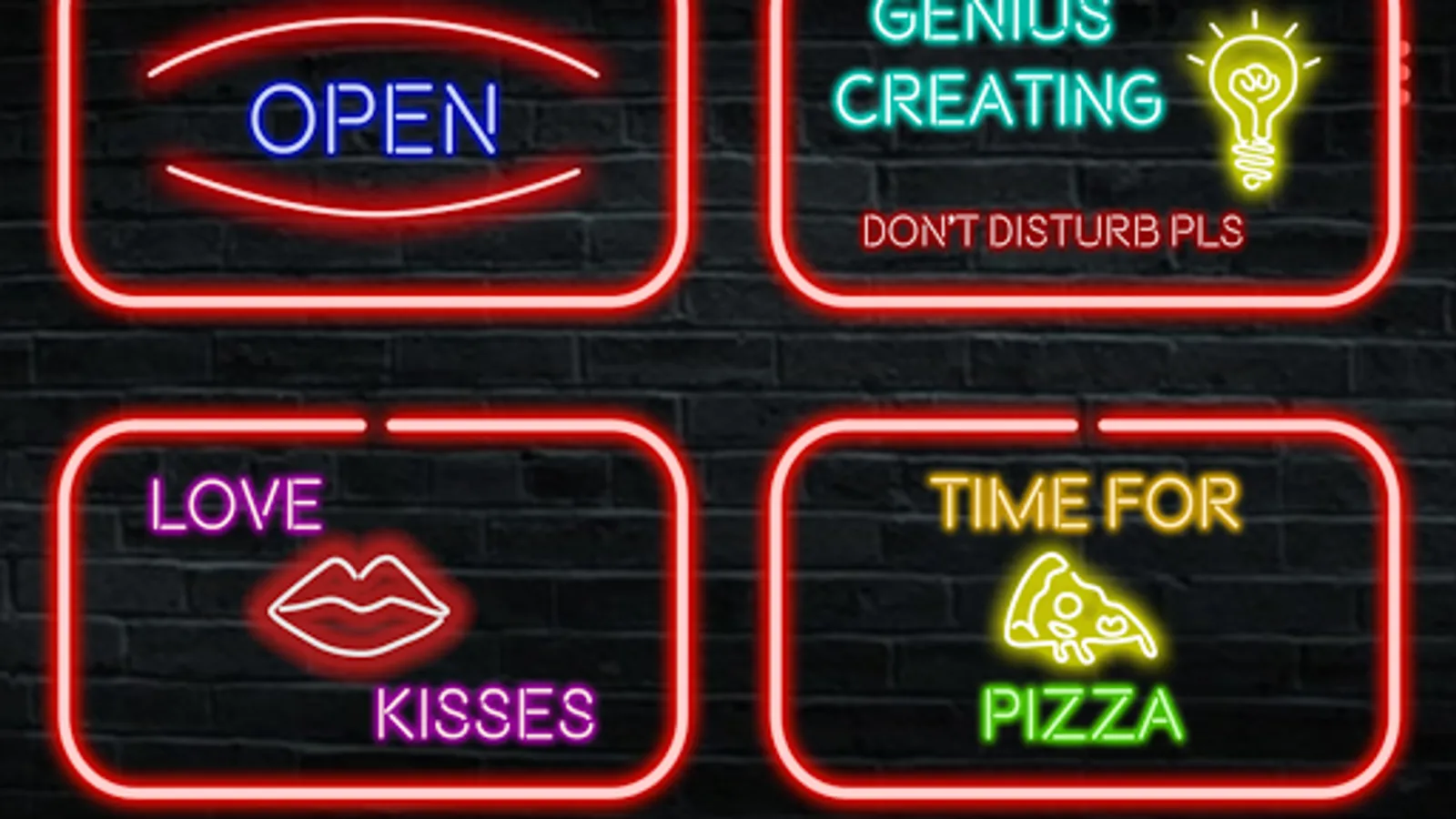There are several pre-designed neon posters that you can change as you desire. You can modify the letters of the neon board, as well as the colors of the lights and the images that accompany the signs. You can change everything!!