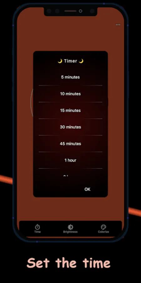 ✔️️ Configure the time you want Orange Light to be active on your phone.