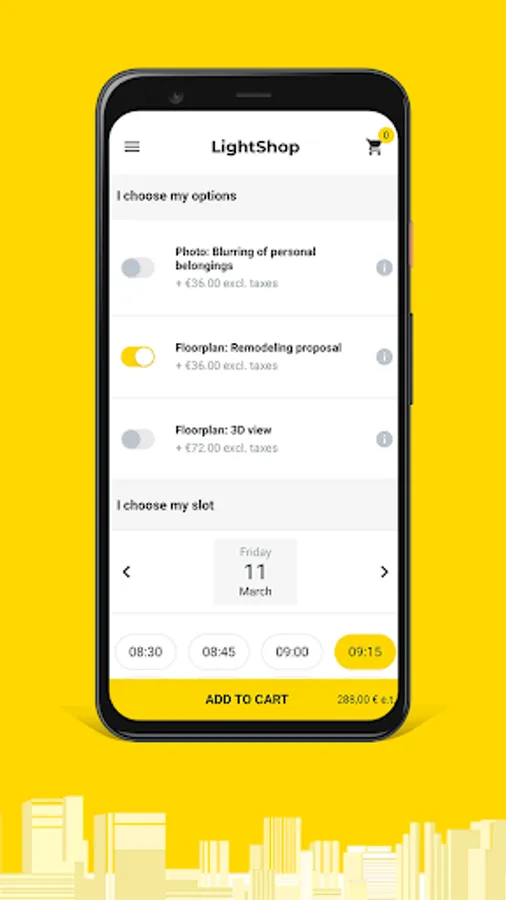 With LightShop, book a real estate marketing professionnal to help you promote your property and to boost its market value. Choose among our wide services catalogue available stand alone or packaged, customize with options following your needs and choose the time slot that suits you best.