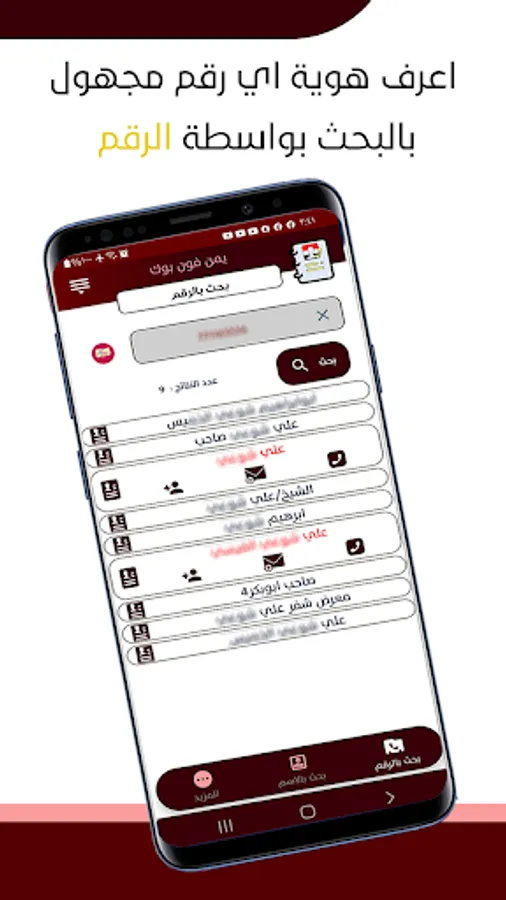 A Yemeni phone book and number detector application enables you to reveal numbers or names and know the identity of unknown or annoying callers by searching for them in databases that speak periodically and continuously without withdrawing your contacts or requesting any compulsory powers.
