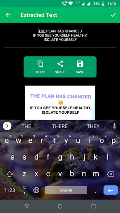You have image of business card shared on WAapp or any magazine cover photo form where you need the url or email id or phone number, simply take photo and use this Text scanner app to extract text and save this text or share it from within an app.