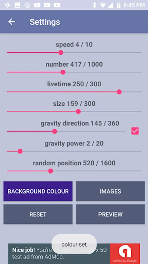 The purpose of the app is to create a funny interactive wallpaper that responds to the touch of the display.