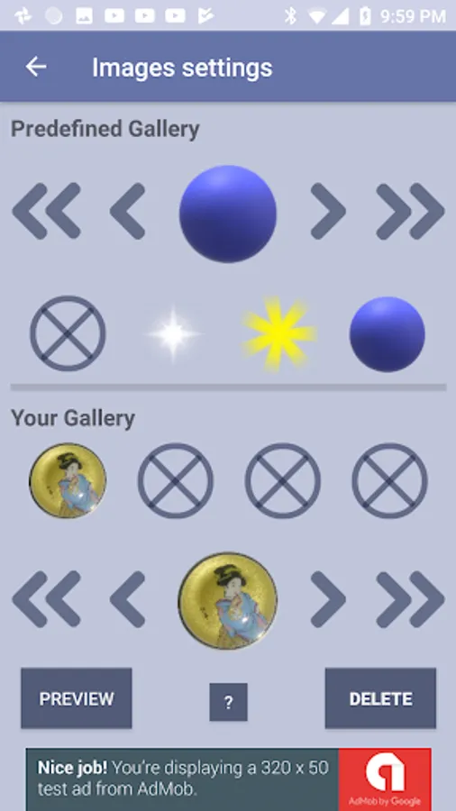 There is a choice of two image galleries. The first one is built-in, the second one is a gallery where you store your images through the built-in graphics editor.