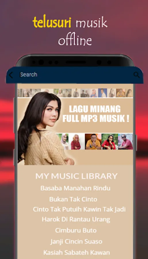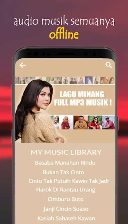 This application is a music application for all of you Minang music lovers which are still popular to this year and also many songs from original Minang singers, examples of popular songs include Between Love and Disappointment, Ku Puja Puja, Takabek Gadih Rantau, Panek Diawak Kayo Diurang, Don't Go and many others. This application is an application made by fans of Minang songs for you fans of Minang songs.