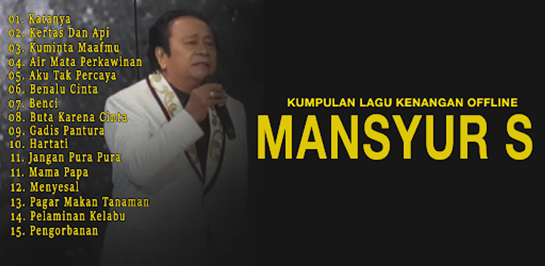 These songs are some examples of popular songs from Mansyur S., and there are many other songs that are also quite famous. Dangdut music performed by Mansyur S. has strong characteristics and has become one of the icons of the dangdut music genre in Indonesia.