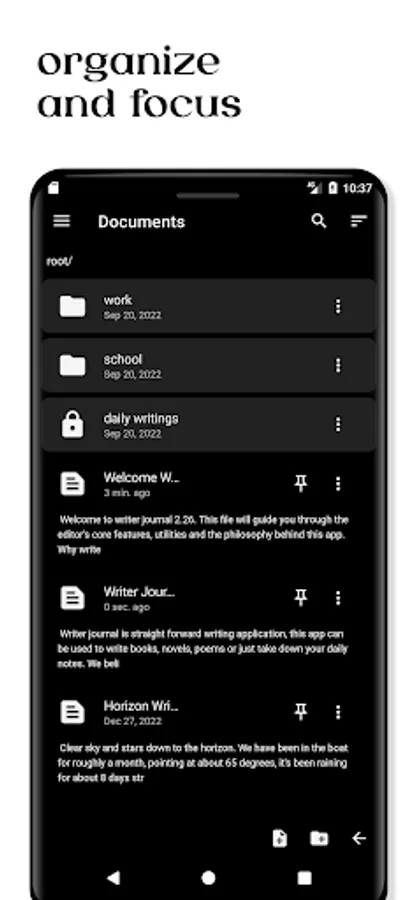 * Many premium themes to satisfy your eyes. (dark themes against eye strain write even at night).