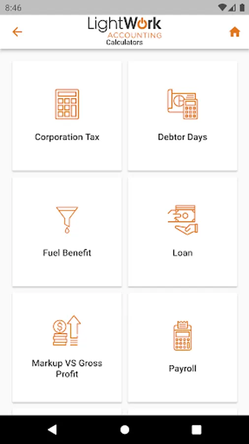 Calculators for Corporation Tax, Debtor Days, Fuel Benefits, Loan, Markup vs Gross Profit and Simple VAT, etc