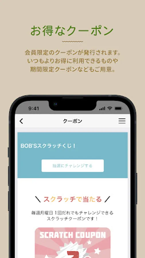 アプリを持っていると会員限定のクーポンが発行されます。