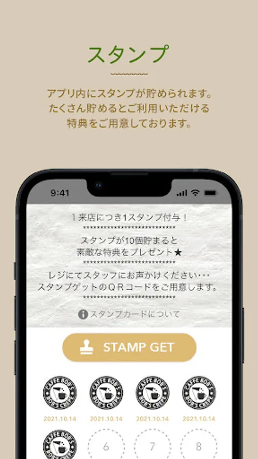 アプリ内にスタンプが貯められます。